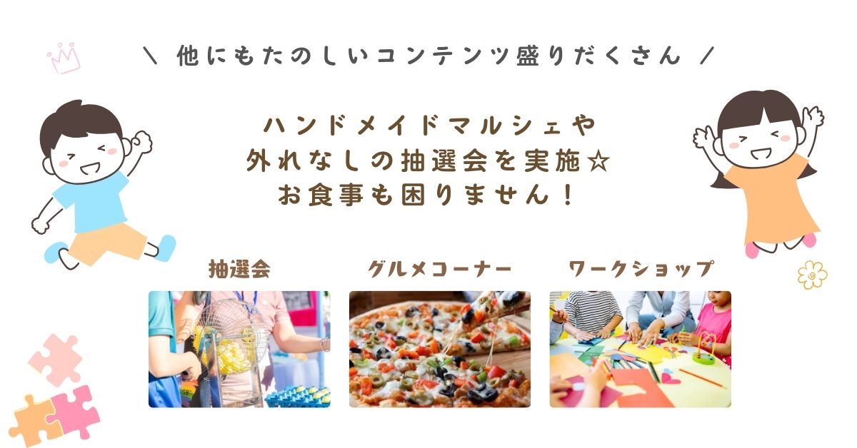 その他、外れなしの抽選会やハンドメイドマルシェ、キッチンカーなど