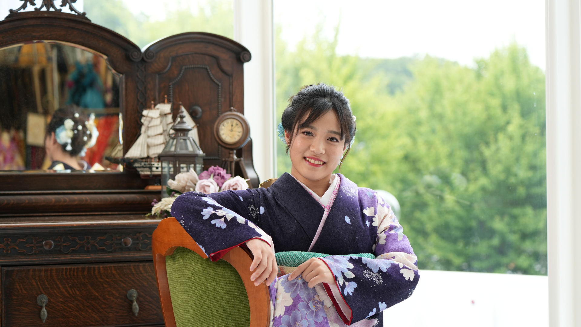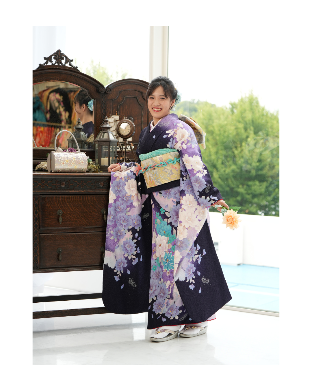 紫のお着物がとてもよくお似合いで