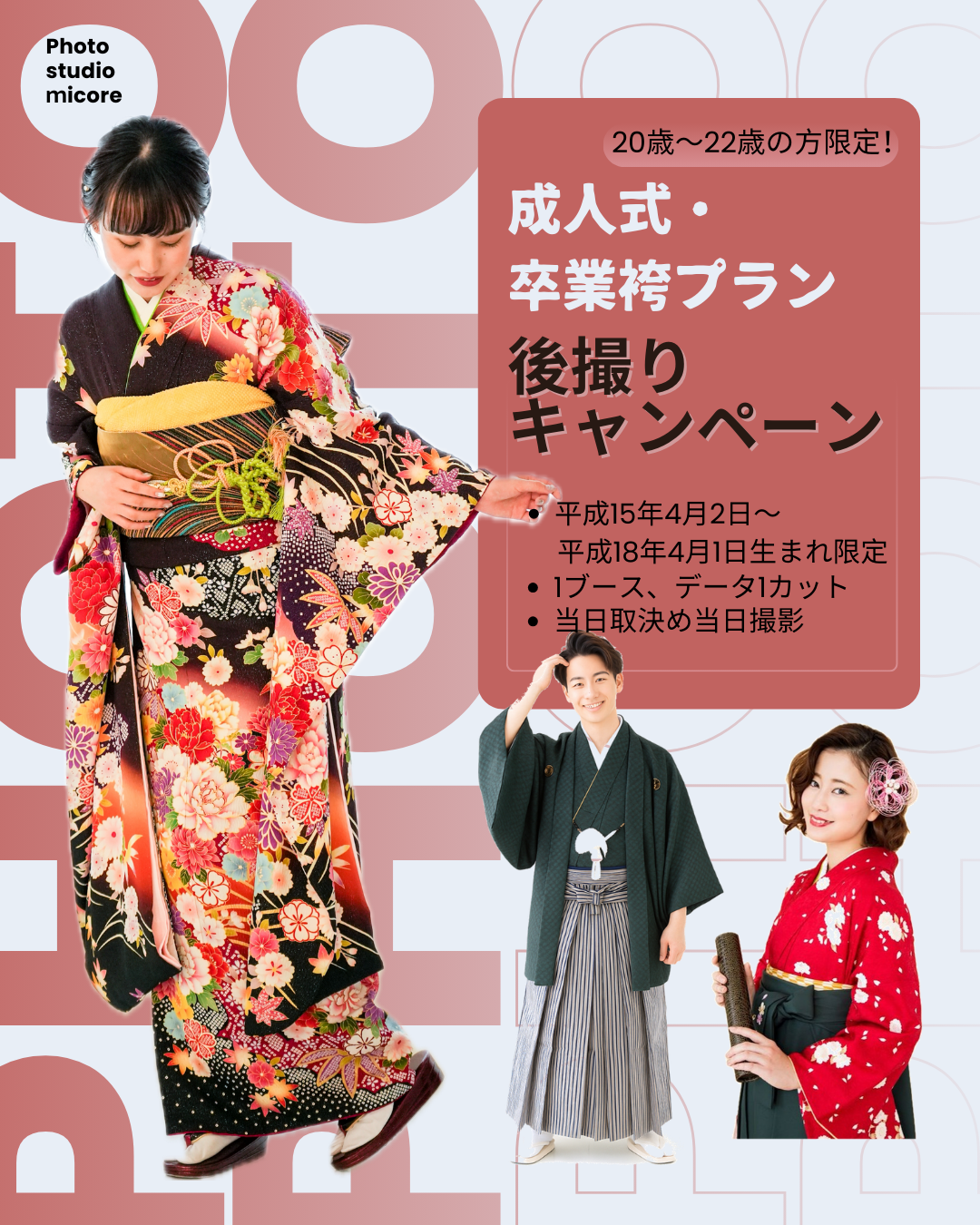 ✔ 当日とは別のお着物・卒業袴で撮影可能
